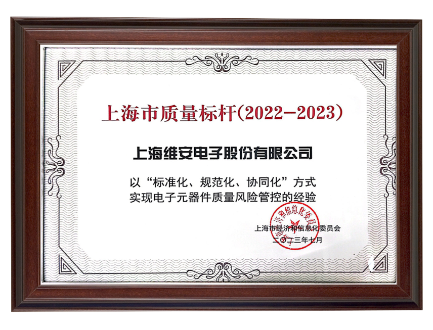 近日,由上海市经济和信息化委员会组织开展的2022-2023年度上海市“质量标杆”企业遴选结果发布,上海维安电子股份有限公司(以下简称“维安股份”)凭借《以“标准化、规范化、协同化”方式实现电子元器件质量风险管控的经验》荣获上海市“质量标杆”企业称号。