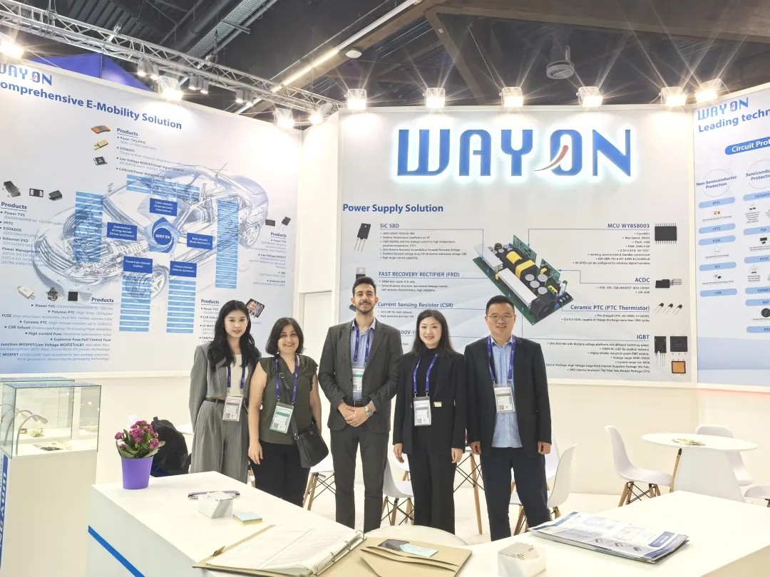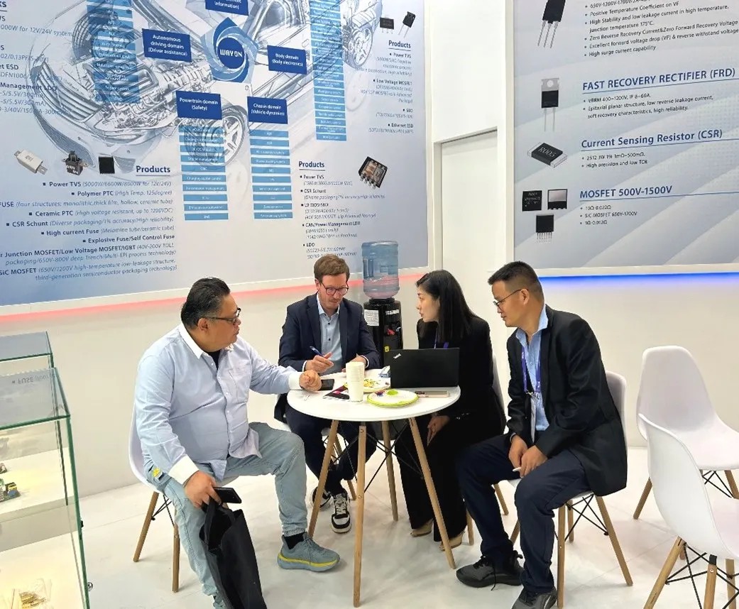 在汽车电子领域,维安(WAYON)展示了PPTC、CSR、ESD&EOS、PTVS、MOSFET、SiC SBD、IGBT、LDO、CAN/LIN Transceiver等多元化的产品,这些器件为满足现代汽车对高效、可靠和高性能的需求而设计。