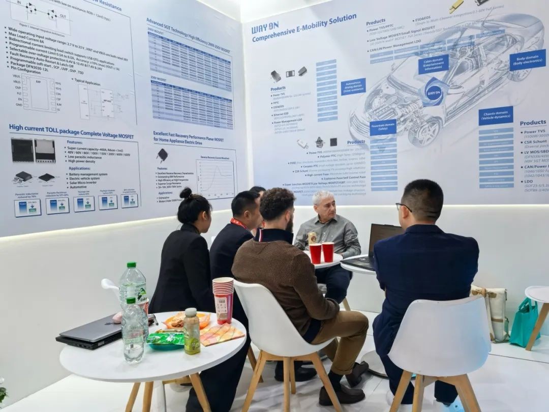 本次展会现场,维安展示了PPTC、PTVS、ESD、E-fuse、TOLL MOSFET、SGT MOSFET、VD MOSFET等众多创新的产品以及最新的电源解决方案、汽车技术解决方案,旨在通过分享最新的产品技术、解决方案和实践经验,彰显维安在业内的领先水平。