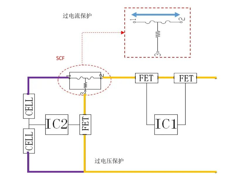 过电压保护:当二级保护IC监测到异常电压,过电压保护将会启动。二级IC会使FET通路,让电流流经保险丝内部的加热器,加热器会产生热量熔断保险丝。