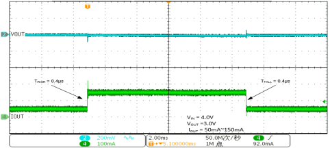Load Transient@0.4µs: -50mV@50mA~150mA, +25mV@150mA~50mA