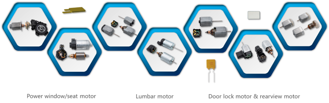 维安(WAYON)品牌车规级PPTC产品,直接配套日系、欧美等国际主流汽车电机厂商,合作历史长达10年以上,间接配套主机厂包括宝马、大众、通用、特斯拉、标致雪铁龙、雷诺、本田、丰田、日产、现代、吉利、比亚迪等国内外主要品牌,广泛应用在了电动座椅调节系统、电动升降窗调节系统、电动门锁系统等为代表的车身设备中,保障了汽车的舒适性和安全性。
