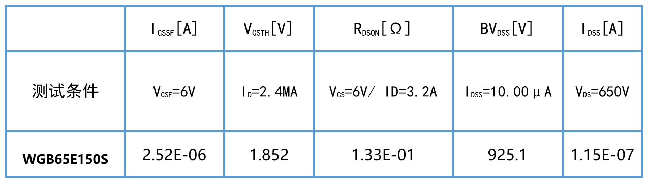 表二 GaN器件DC参数
