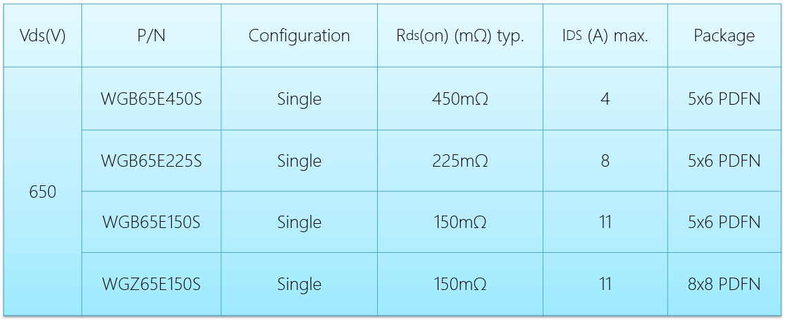 随着GaN的高效率得到实际验证,市场对于GaN的信心逐渐增强,优势日益显著以及用量不断增长,未来功率GaN技术将成为高效率功率转换的新标准。以下是维安新推出的E-Mode GaN器件,欢迎大家前来索样并与维安的专家讨论其特性。