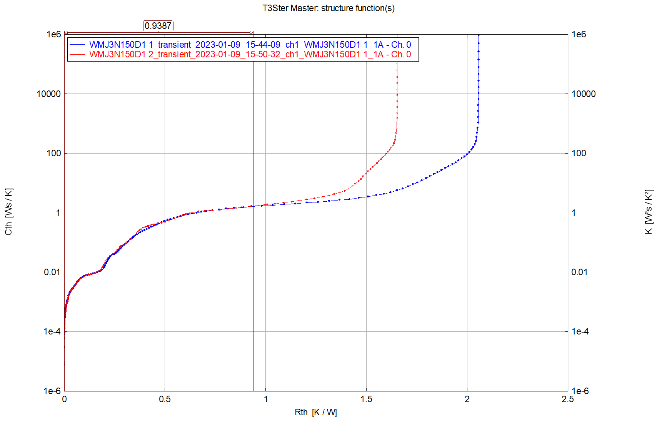 WMJ3N150D1与竞品的热阻测试值(双界面法)