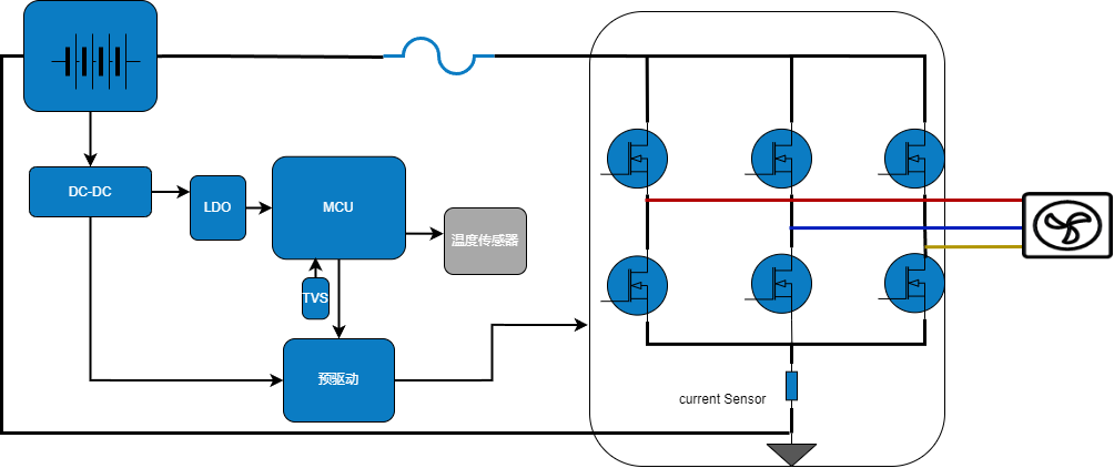 在设计汽车风机、水泵、油泵等电机驱动控制器时,使用车规MCU+车规预驱+车规N沟道功率MOSFET,可以适配不同功率、各种通信方式和各种驱动方式。