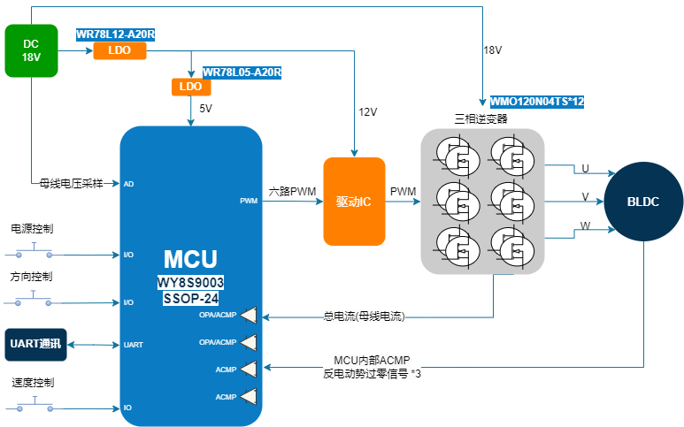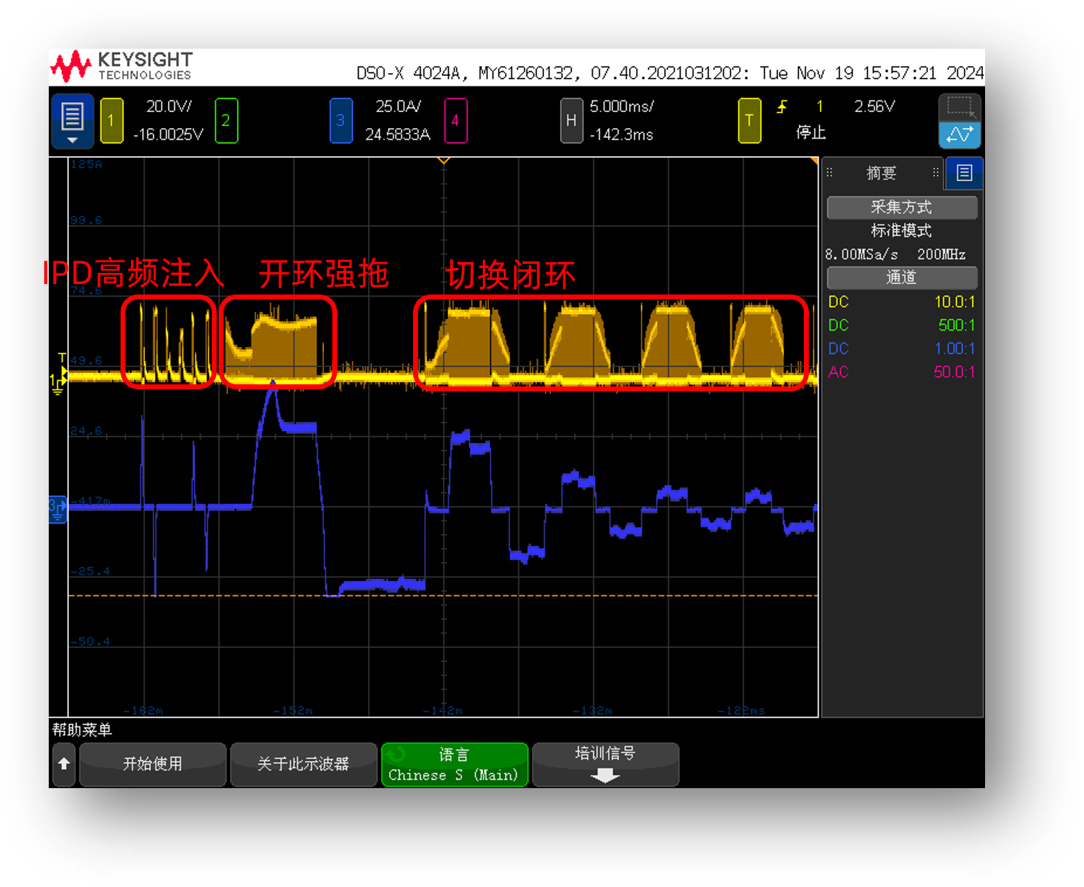 采用脉冲定位方式确定电机转子初始位置,根据初始位置进行换向操作,同时检测反电动势过零信号,检测到稳定的反电动势信号稳定后, 切入反电动势过零控制。