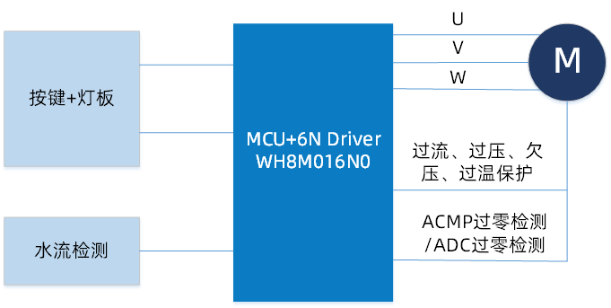 ● 电机控制:采用无感方波控制,支持内置ACMP过零检测、ADC过零检测。